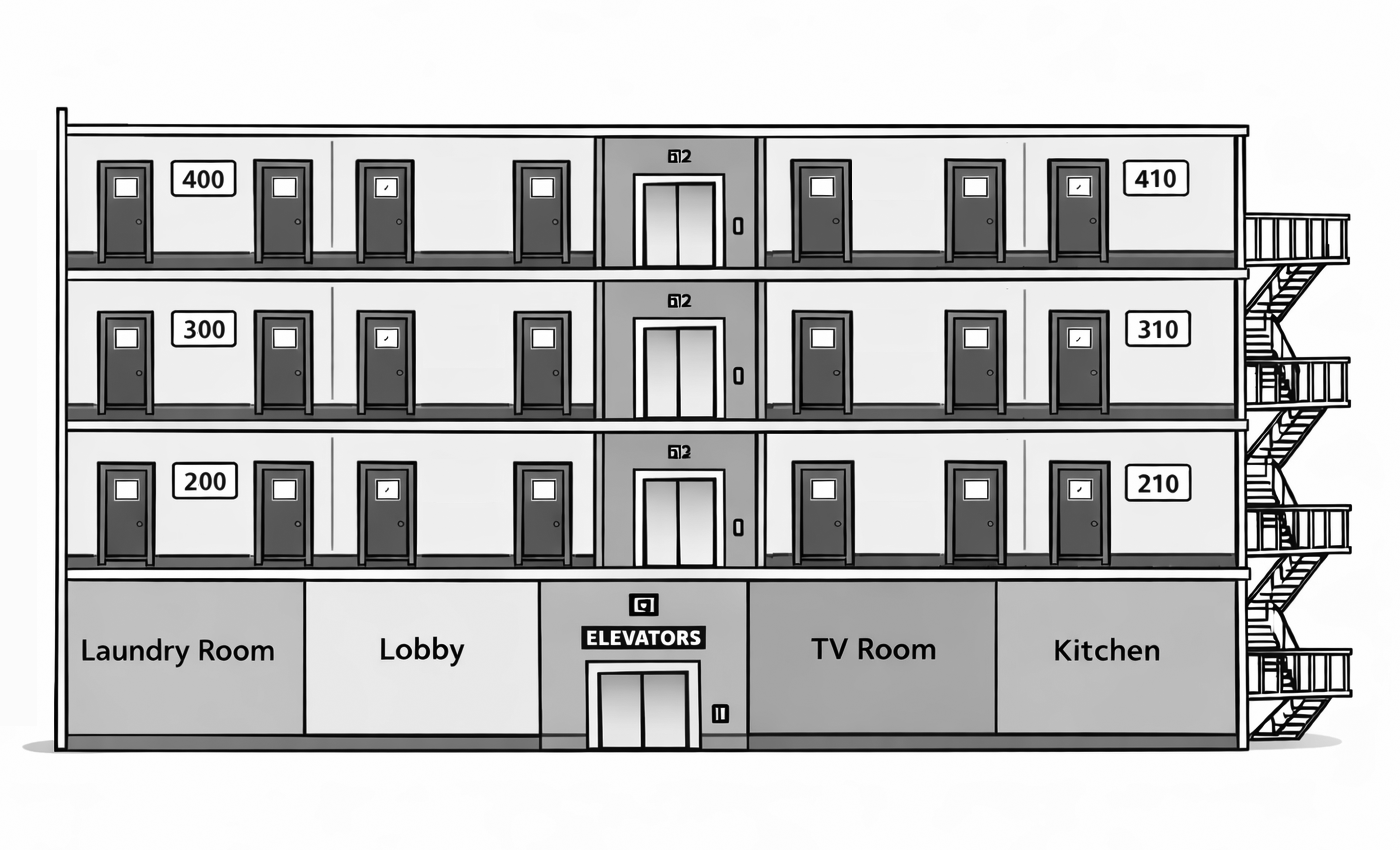 Welcome to the residence hall check-in desk.